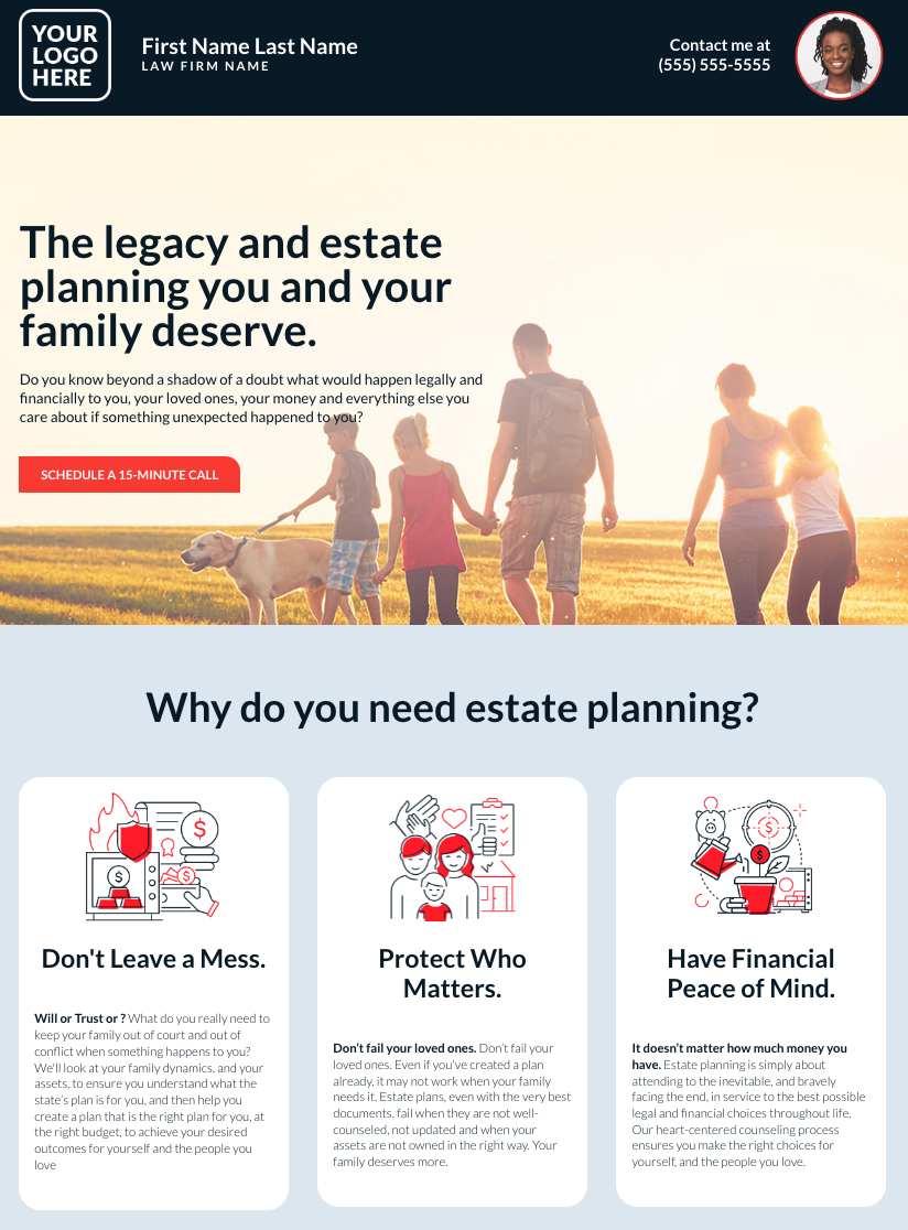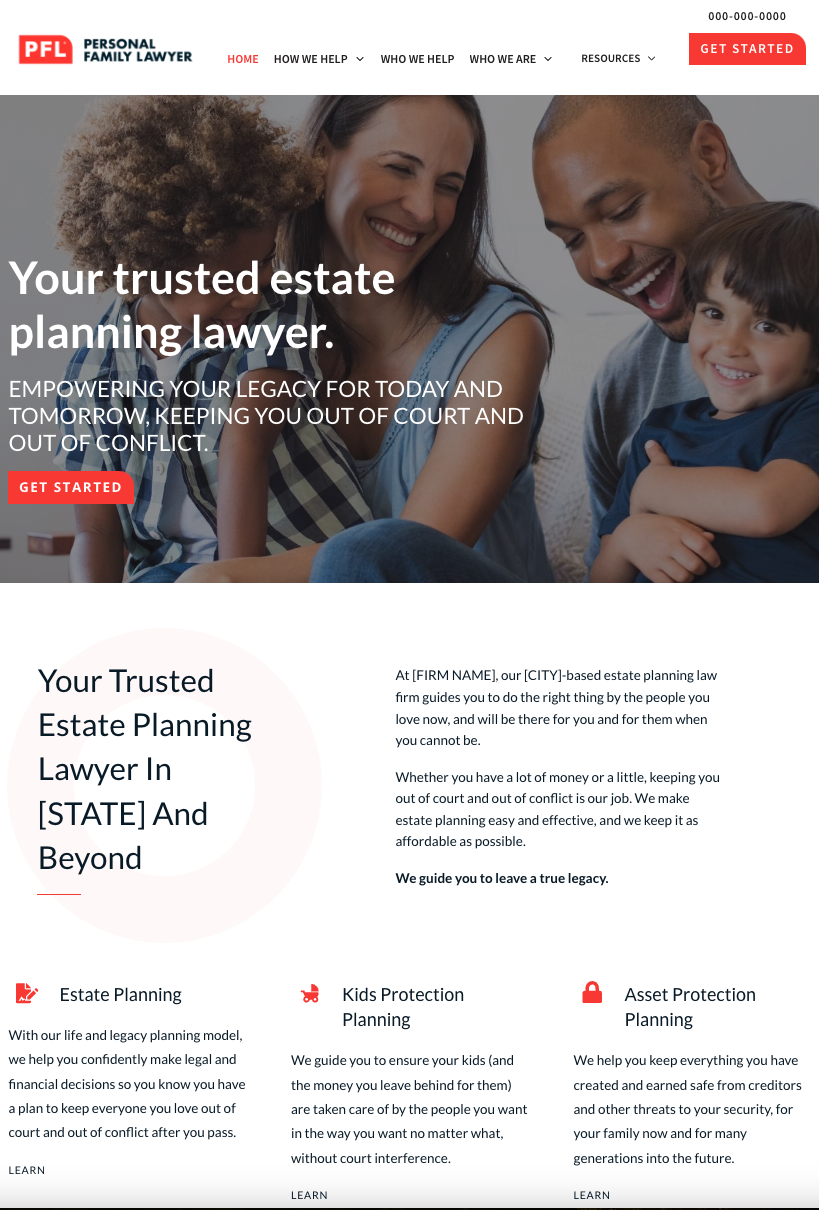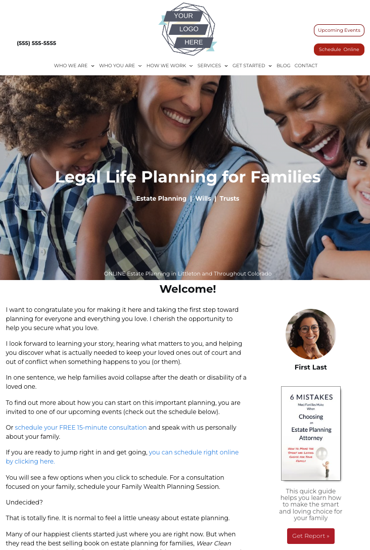Who is this best suited for? PFLiTs and longer term PFLs who either don’t have a web presence at all, or who want a separate “estate planning” focused website for their Life & Legacy Planning service offering and aren’t ready for the full website option.